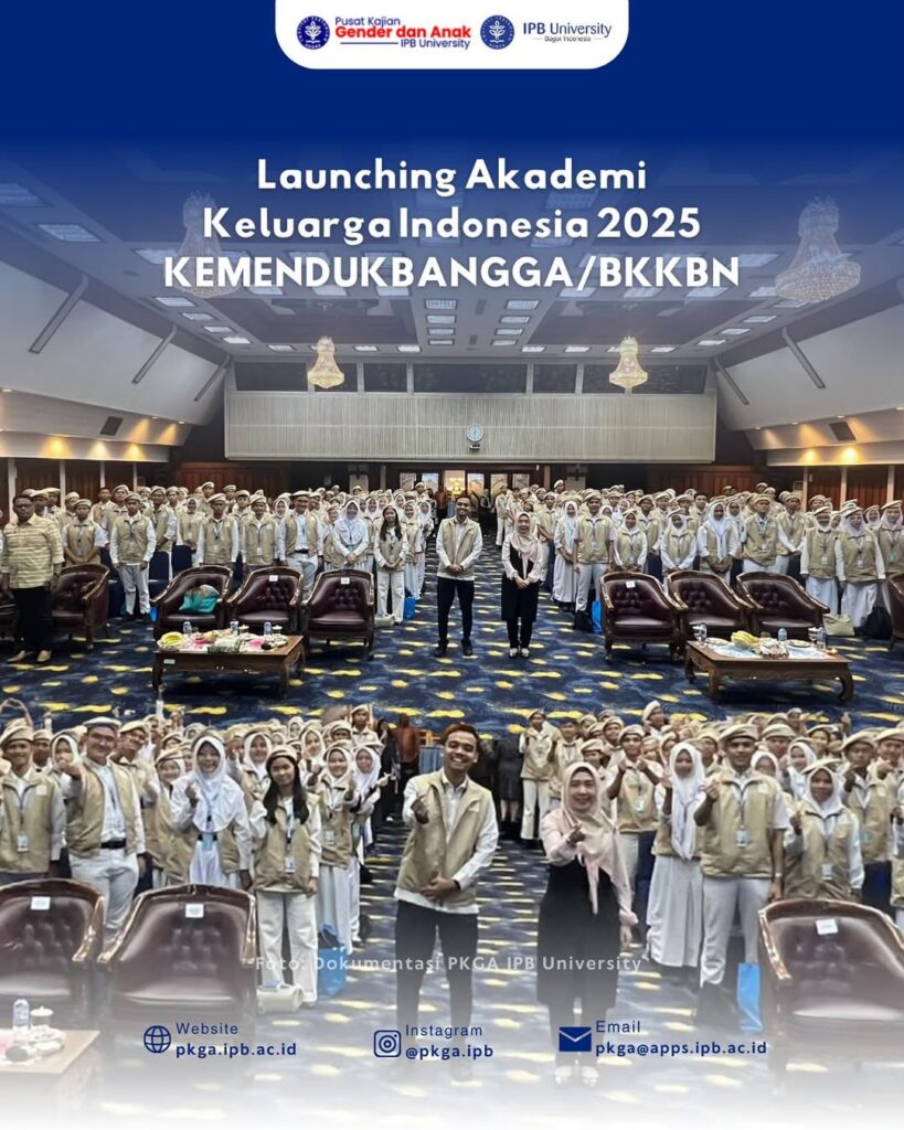 (18/9) PKGA IPB University turut hadir dalam kegiatan Launching Akademi Keluarga Indonesia Tahun 2025 yang diselenggarakan oleh Kementerian Kependudukan dan Pembangunan Keluarga (Kemendukbangga)/BKKBN pada Kamis, 18 September 2025.